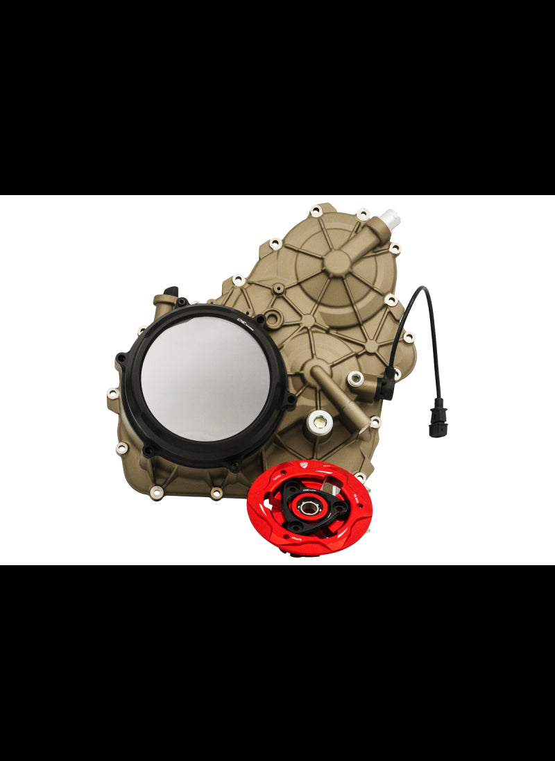 The Streetfighter V4 has a one-piece engine cover on the clutch side, which makes it harder to install an open clutch kit. This kit solves that problem, as it comes with an engine cover, clutch cover and all parts. Fits without modifications.