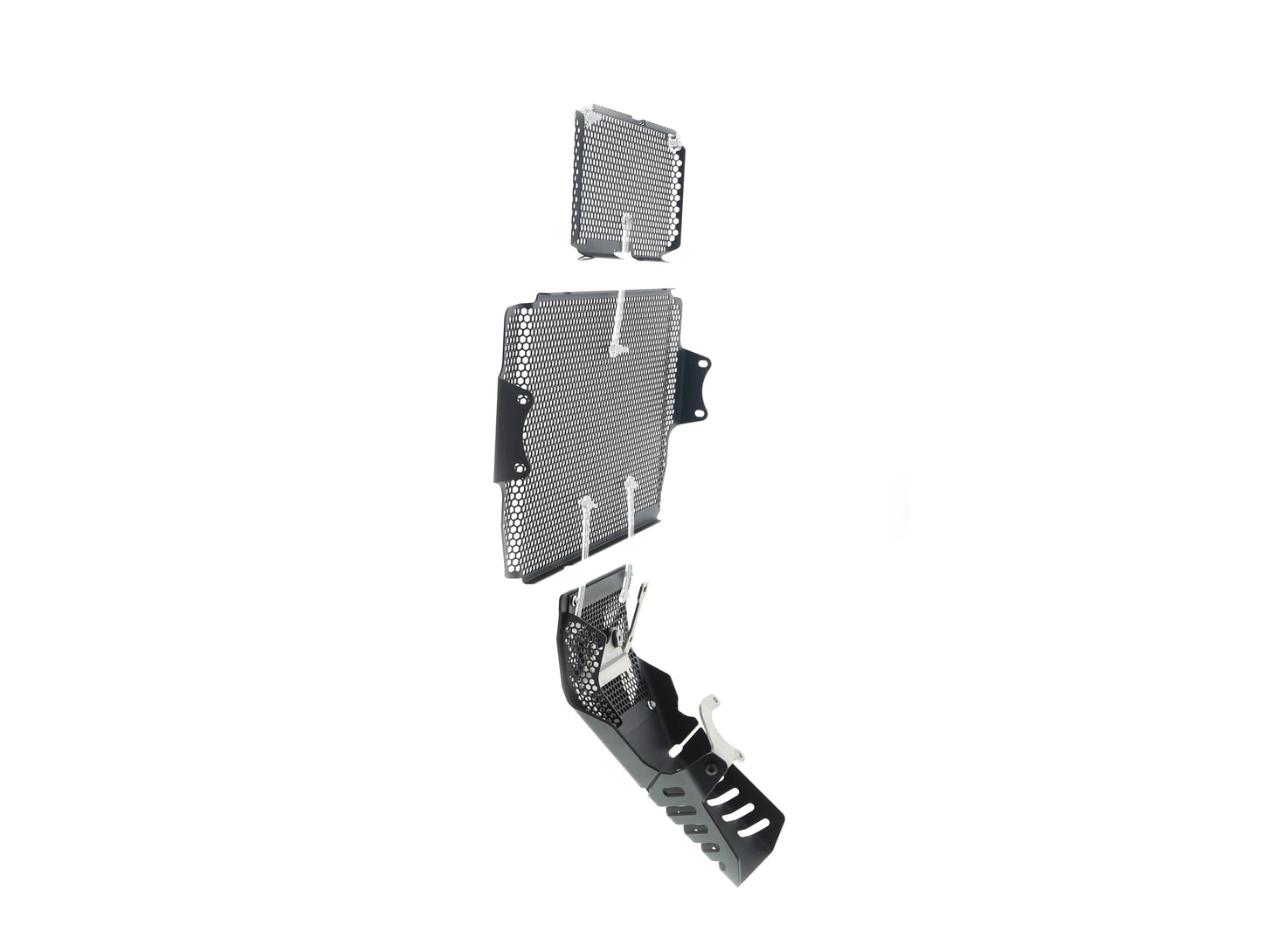 The Ducati Multistrada radiator, oil and engine guards are finished in a black powder coating.