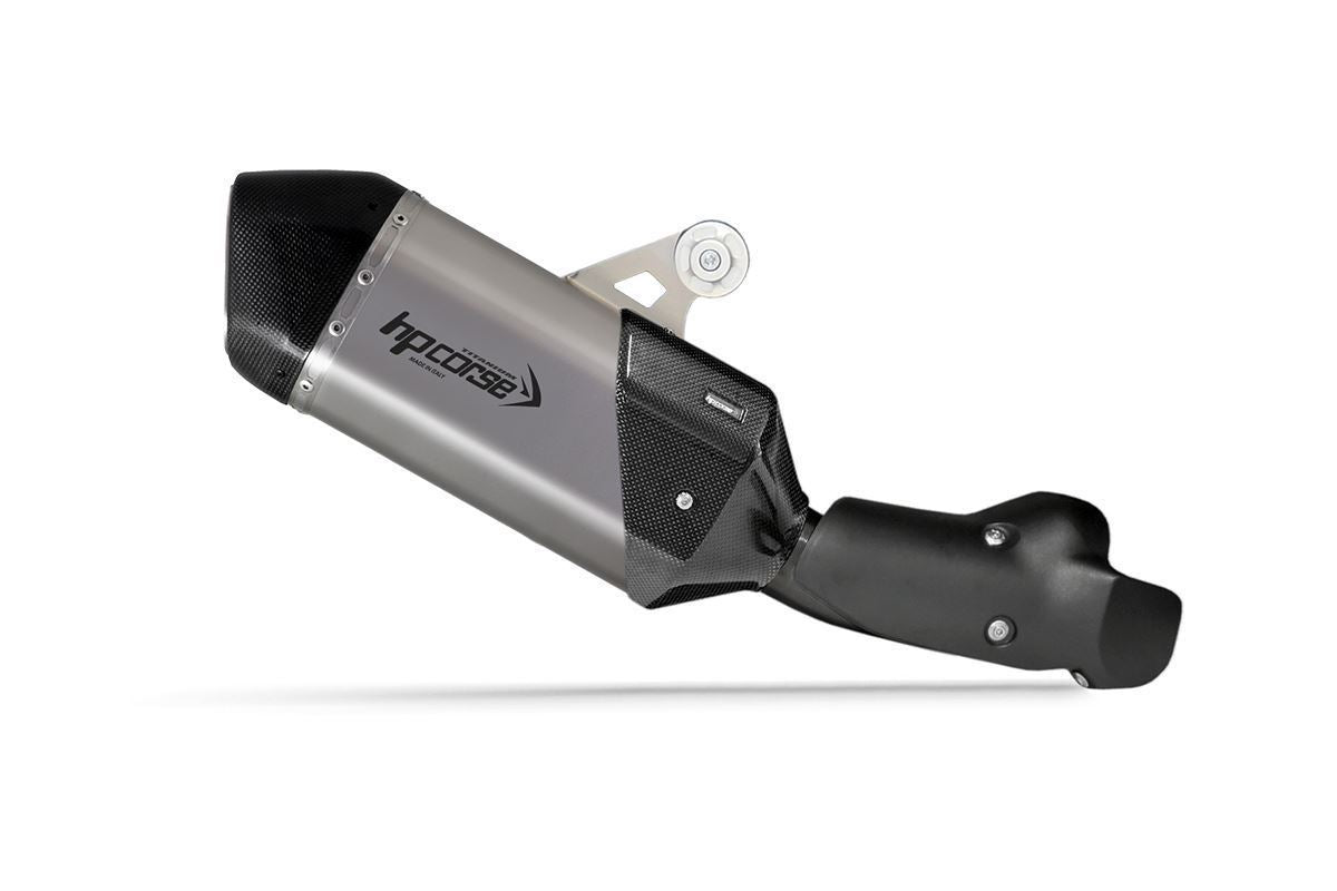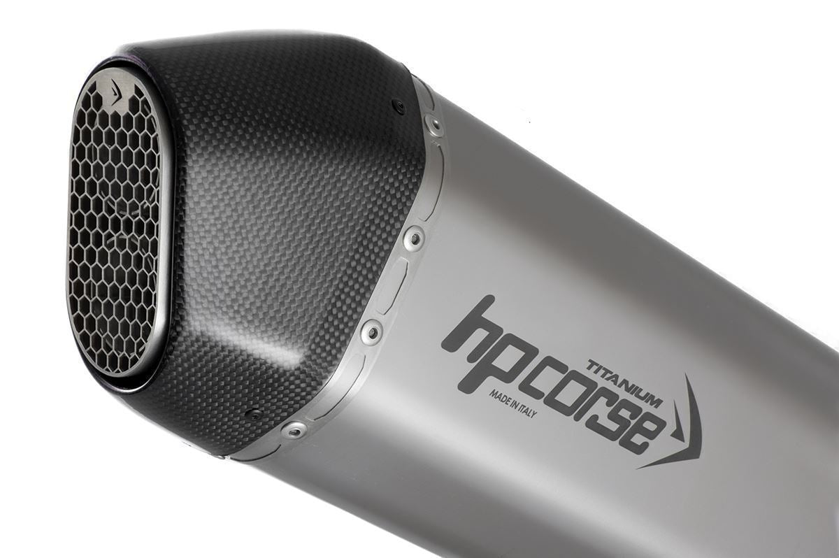 Dankzij de Hydroforming Technology ontstaat een vloeiend, naadloos ontwerp. De eindkap is vervaardigd uit carbonvezel en voorzien van een dubbele uitlaatmond met beschermend rooster. Het slip-on systeem is CNC-gefreesd en met de hand TIG-gelast voor maximale sterkte en duurzaamheid. Het lasergegraveerde HP Corse logo benadrukt de premium afwerking.
