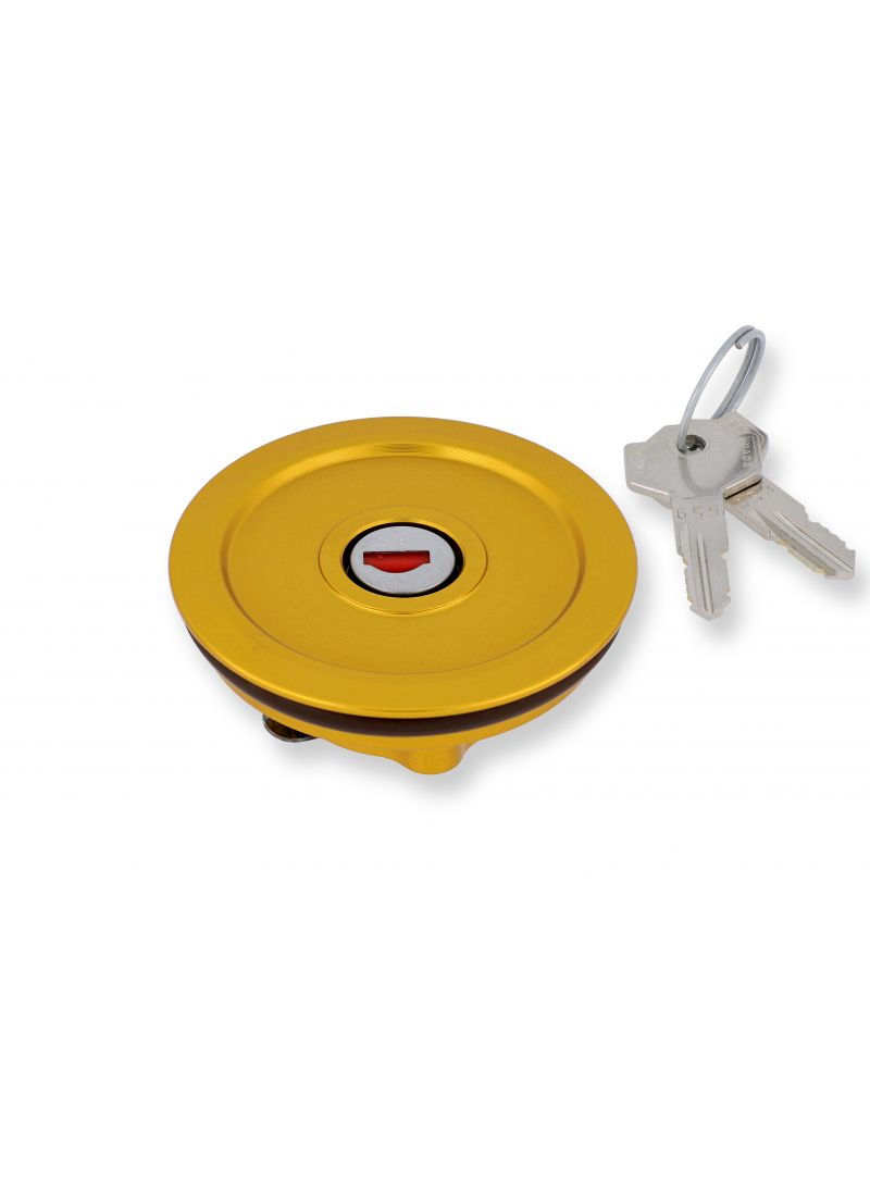 CNC Racing Fuel Tank Cap Plug mit Schlüsselschloss - in Schwarz, Rot oder Gold ausgasbar - wird mit zwei Schlüssel geliefert.