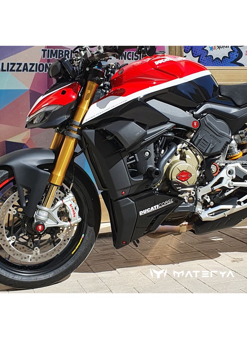 CNC Racing und Micro Sapiens/Materya haben sich zusammengeschlossen, um verbesserte Winglets für den Streetfighter V4 zu schaffen. Tolles Design mit verbessertem Luftstrom, um Form und Funktion zu kombinieren. Mit der ständig steigenden Leistung von Ducatis wird es auch wichtiger denn je, die vordere Wheelforce zu verbessern. Genau das hat CNC -Rennsport in diesem Kit getan.