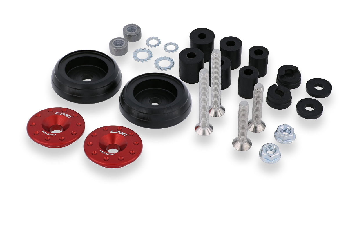 Lieferung mit drei verschiedenen Adaptern (14-16-18 mm), um alle Modelllenkern und Clip-ALS anzupassen. Aus massivem Ergal7075 bearbeitet und in Schwarz, Rot, Gold, Titan oder Blau anodiert.