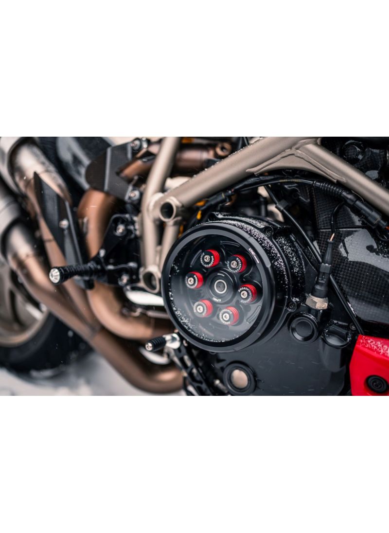 Voor Ducati-liefhebbers die het iconische geluid en de mechaniek van een droge koppeling willen laten zien zonder concessies te doen aan bescherming, is het transparante koppelingsdeksel 'Clear' van CNC Racing de ultieme keuze. Dit meesterwerk van Italiaans design combineert esthetiek met hoogwaardige bescherming en past perfect op alle Ducati-modellen met een droge koppeling.
