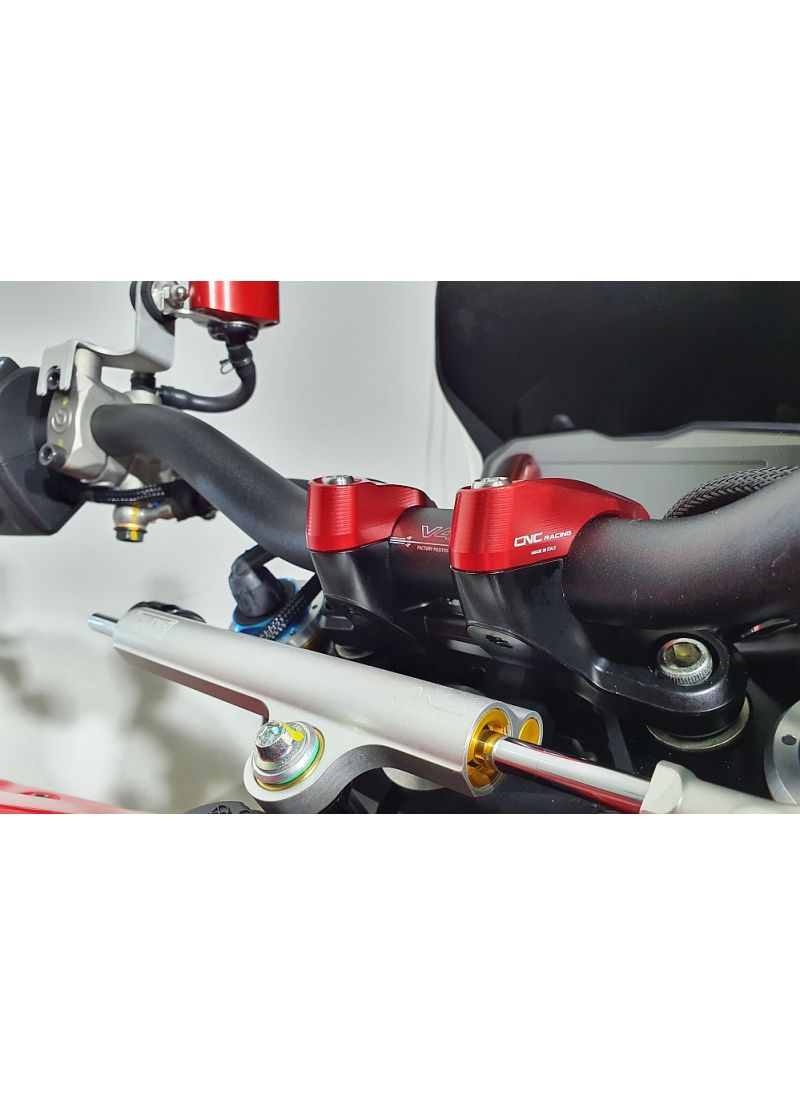 Add that extra Italian touch to your streetfighter v4 with the cnc racing handlebar clamps. A Bolt-on Replacement of the Dull Stock Clamps, Giving your Sf the Italian Design Touch It Deserves in Mere Minutes.