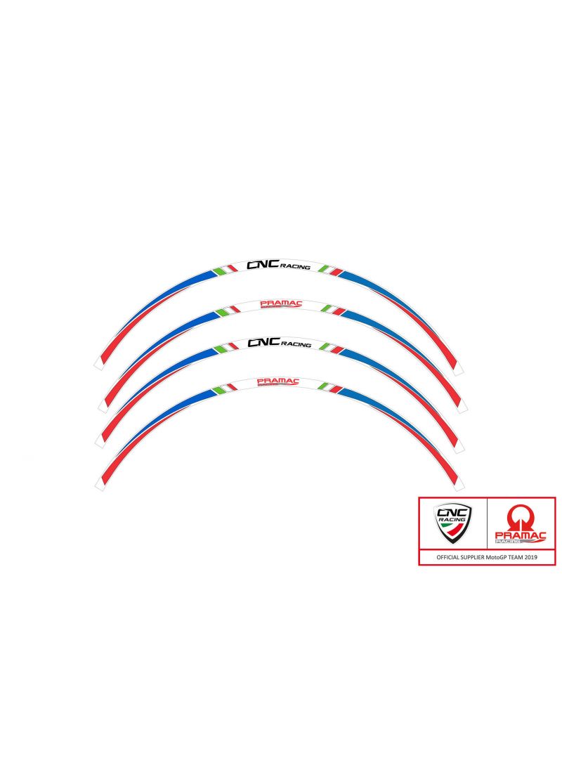 Las pegatinas de borde de edición limitada PRAMAC de CNC Racing son adecuadas para las llantas de 17 pulgadas. Cada pegatina de llanta le da a su bicicleta un aspecto único y deportivo.