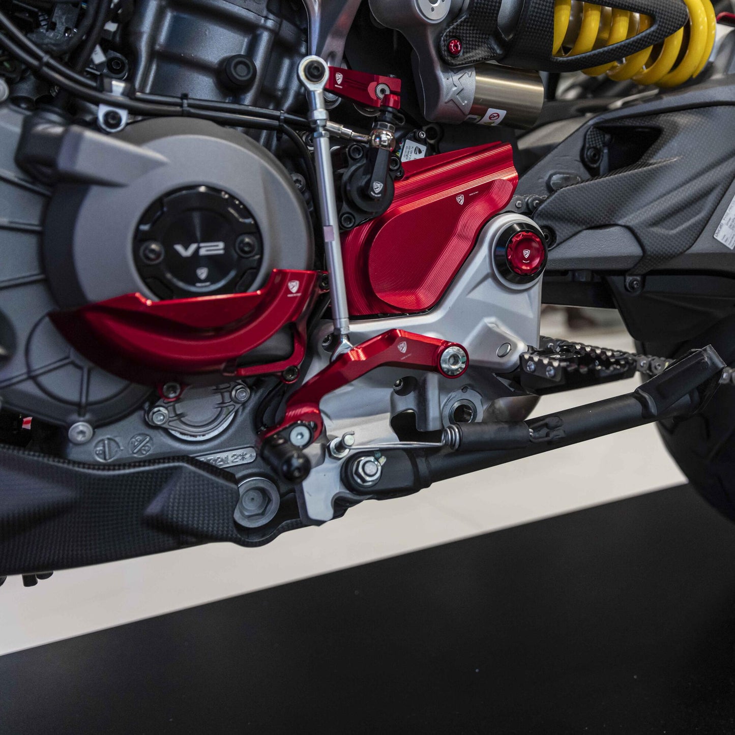 Maak van elk schakelmoment een upgrade met de verstelbare en sportieve schakeladapter van CNC Racing – een lichtgewicht precisie-component dat ontworpen is om jouw Ducati Multistrada V2S 2025+ nog directer en intuïtiever te laten schakelen.
