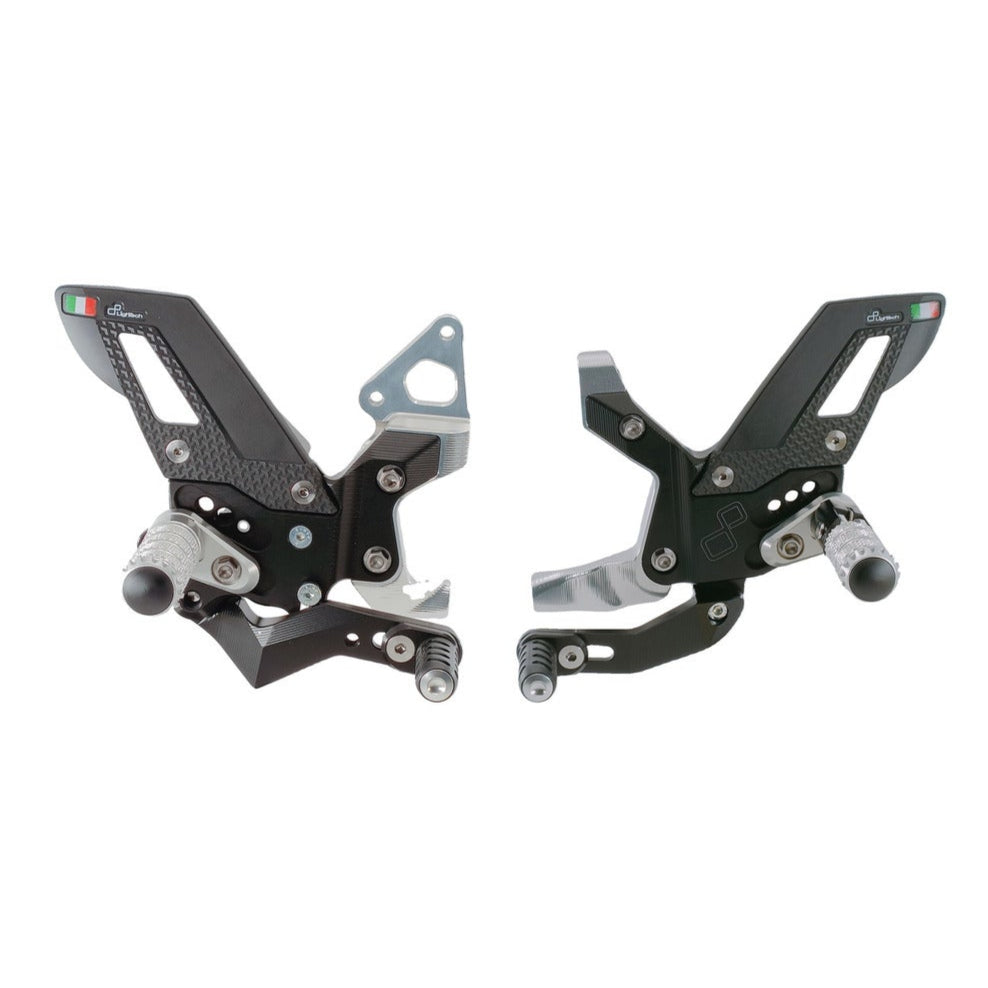 Articulation Ensemble d'interrupteurs de frein réglable avec repose-pieds fixes et motif de commutateur versa (décalage GP) Aprilia Tuono V4 2018-2020 Prêt pour le panier