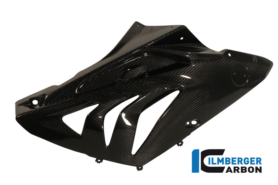 Linker zijkuip voor de 2012- BMW S1000RR, volledig uitgevoerd in carbon. Eenvoudige montage, ter vervanging van het originele exemplaar. 100% carbon, autoclaaf geproduceerd en afgewerkt met duurzame, hightech gelcoating. Dit onderdeel heeft een zeer mooie, diepe glans en behoudt deze voor lange tijd. De unieke kunststof coating is beter overspuitbaar dan een spuitlak, waardoor het eenvoudiger is onze carbondelen van kleur te voorzien indien gewenst.