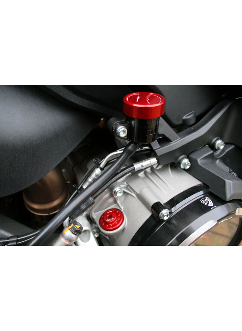 Dit deksel zit op een zichtbare plek – net boven je achterremreservoir – en zorgt daar voor een verfijnde afwerking. Of je nu een sportieve Panigale rijdt of een allroad Multistrada: dit accent past bij elke stijl. Dankzij de perfecte pasvorm kun je het originele deksel eenvoudig vervangen zonder vloeistof te verliezen of het systeem te hoeven ontluchten.