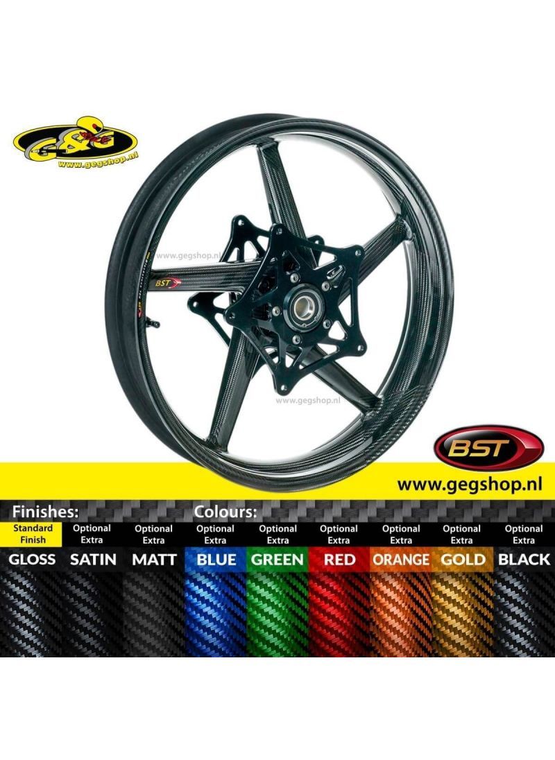 The ultimate improvement for your motorcycle! Up to 30% lighter than most Race rims and up to 60% lighter than the stock rims. BST carbon rims are made from Prepreg carbon for the best balance between strength and weight. In addition to improving performance, your bike stands out with the countless color variations of carbon. This allows you to customize the bike even more!What makes BST Carbon rims so great: