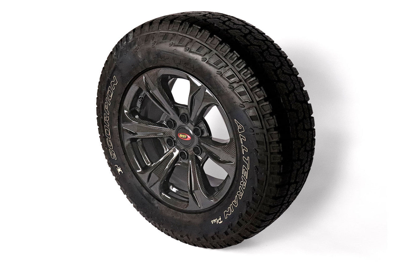 Ontdek de perfecte balans tussen stoere looks en hightech prestaties met de BST Tuff TEK carbon velgenset, speciaal ontworpen voor de Ford Ranger vanaf bouwjaar 2012. Deze set van vier 9 x 20 inch velgen (ET20) is niet alleen opvallend licht met slechts 9,3 kg per velg, maar biedt ook verbeterde prestaties, meer comfort én een uitstraling die je Ranger onderscheidt van de massa.