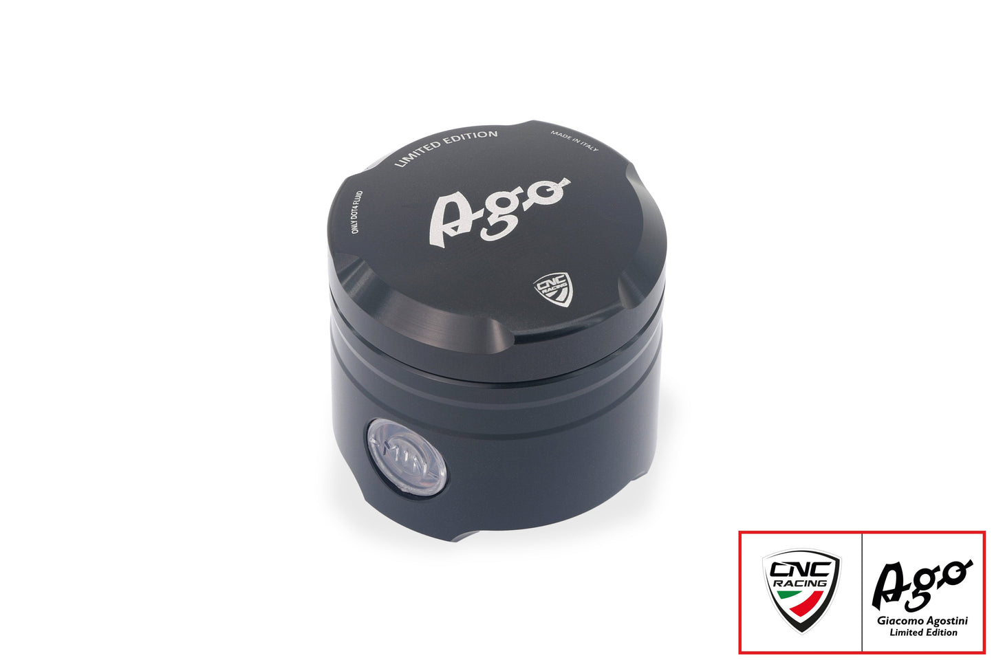 Dit Limited Edition voorremvloeistofreservoir is een exclusief detail voor rijders die meer willen dan alleen functionele onderdelen. Het reservoir is opgedragen aan Giacomo Agostini, één van de meest legendarische coureurs uit de motorsport. De subtiele maar duidelijke lasergegraveerde “AGO”-letters maken meteen zichtbaar dat je hier te maken hebt met een speciale uitvoering, met een directe link naar de racehistorie.