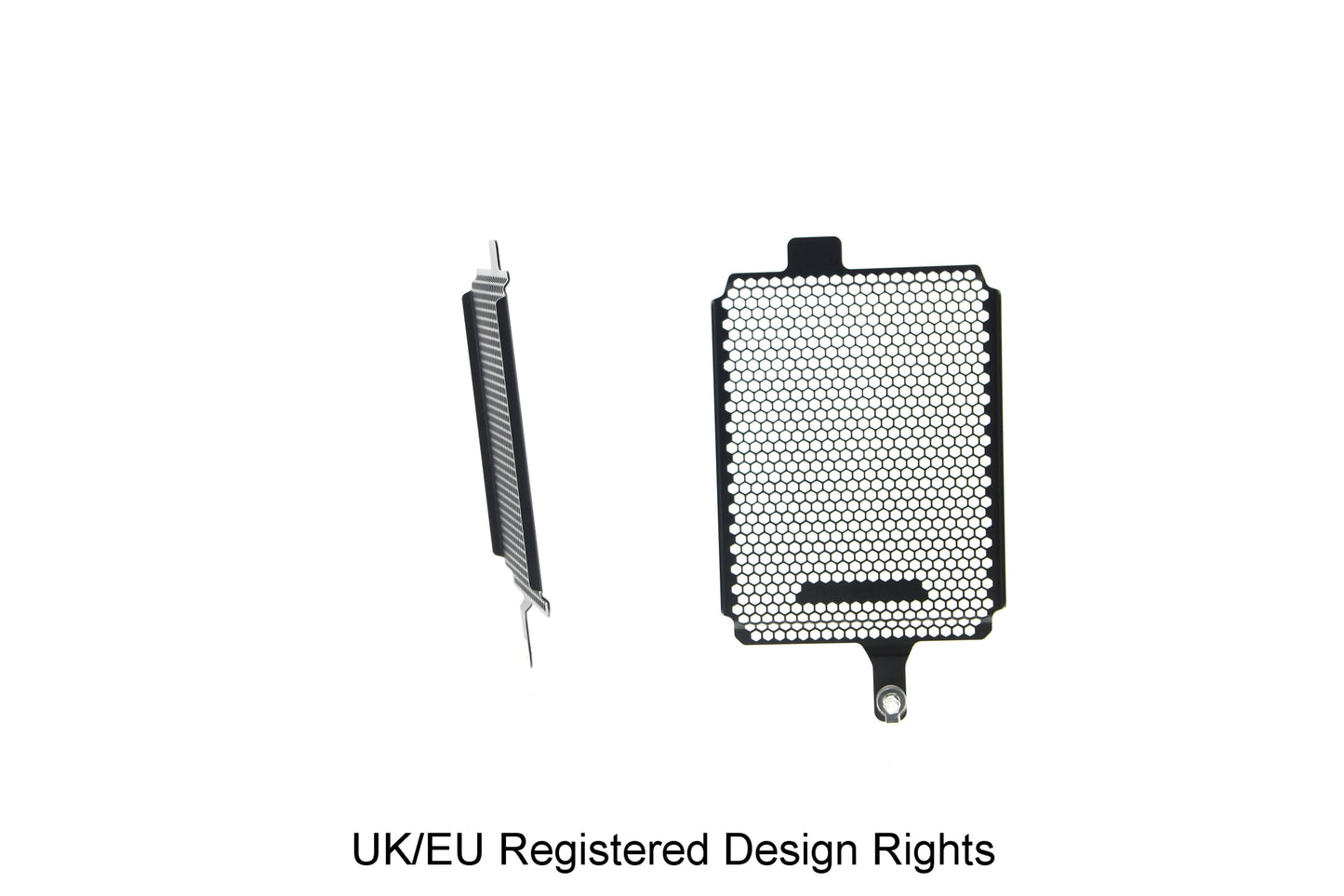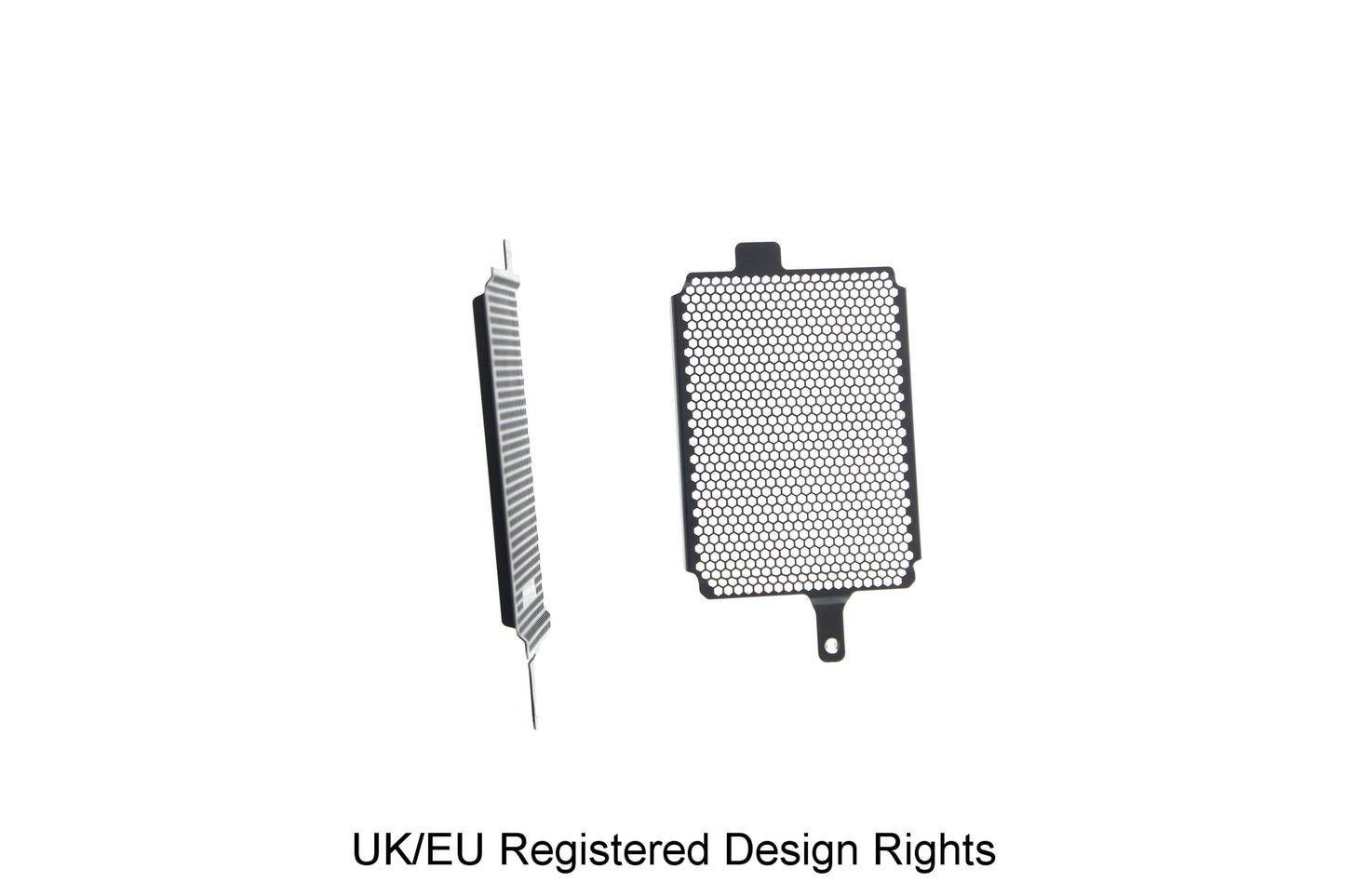 Den elegant designade matrisen är genomborrad med hexagonala hål för att optimera luftflödet samtidigt som maximalt skydd ger maximalt skydd mot vägskräp.