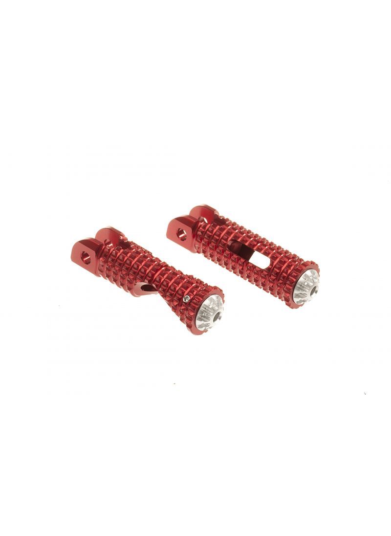 En av de välkända klagomålen på många Ducatis är det begränsade greppet som de ursprungliga fotstöden erbjuder. CNC -racing svarar på detta samtal med en uppsättning racing fotstöd som ger extra grepp och erbjuder mer stöd. Helt millal malad och svart anodiserad, för en maximal livslängd. Naturligtvis vikbara och utan monteringsjusteringar.