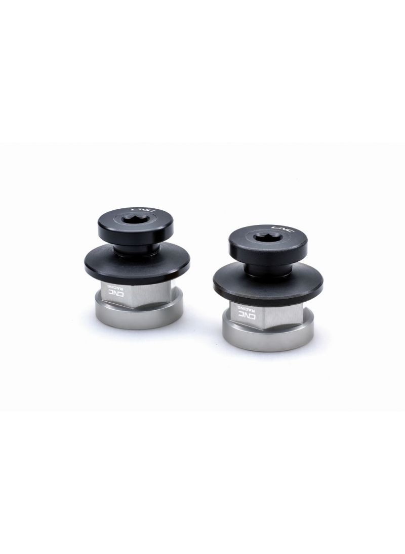 Clever Design av CNC Racing, detta kit är en kombination av bakaxelnötter och bakre swingarm -spolar. Detta kit ger din cykel en renare utseende utan förlust av funktion. Båda bakre svängmuttrarna ersätts av de inkluderade muttrarna, på vilka Bobbin -kiten är installerad.